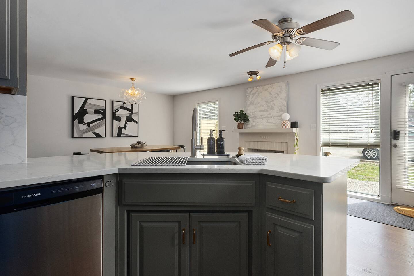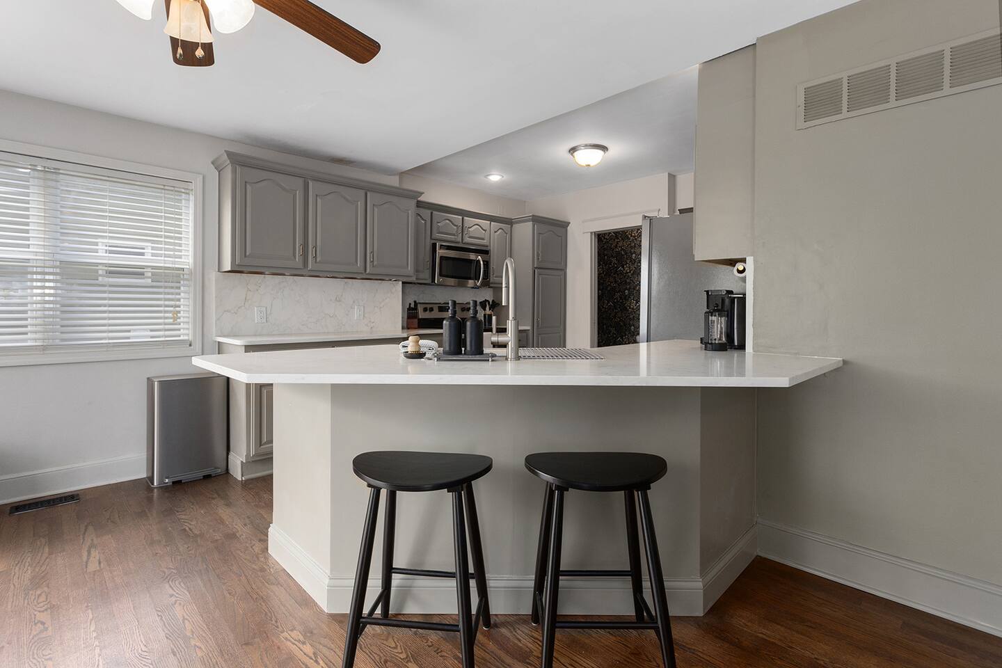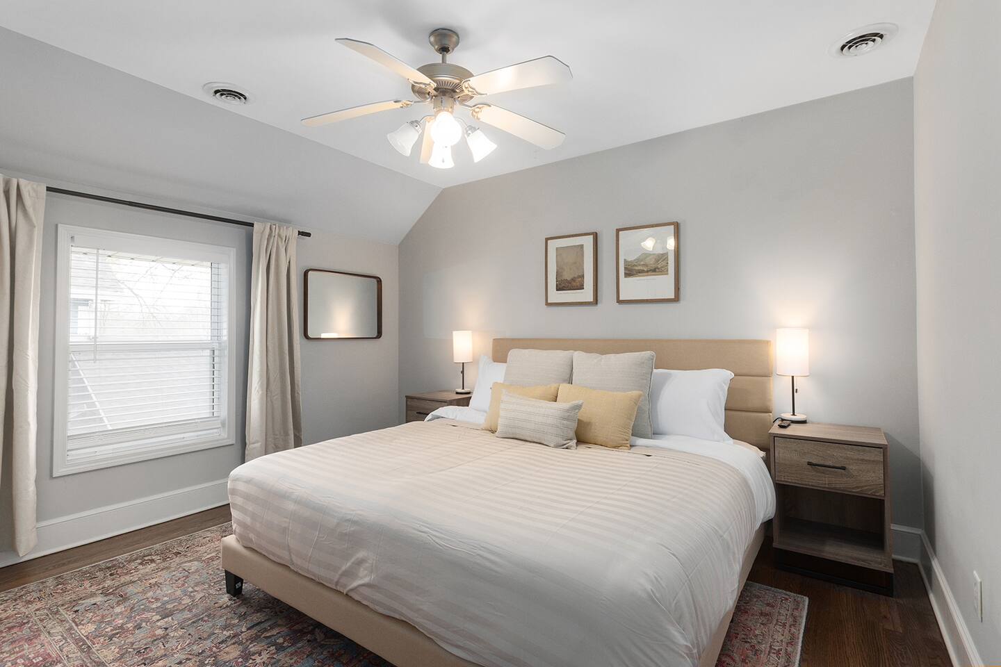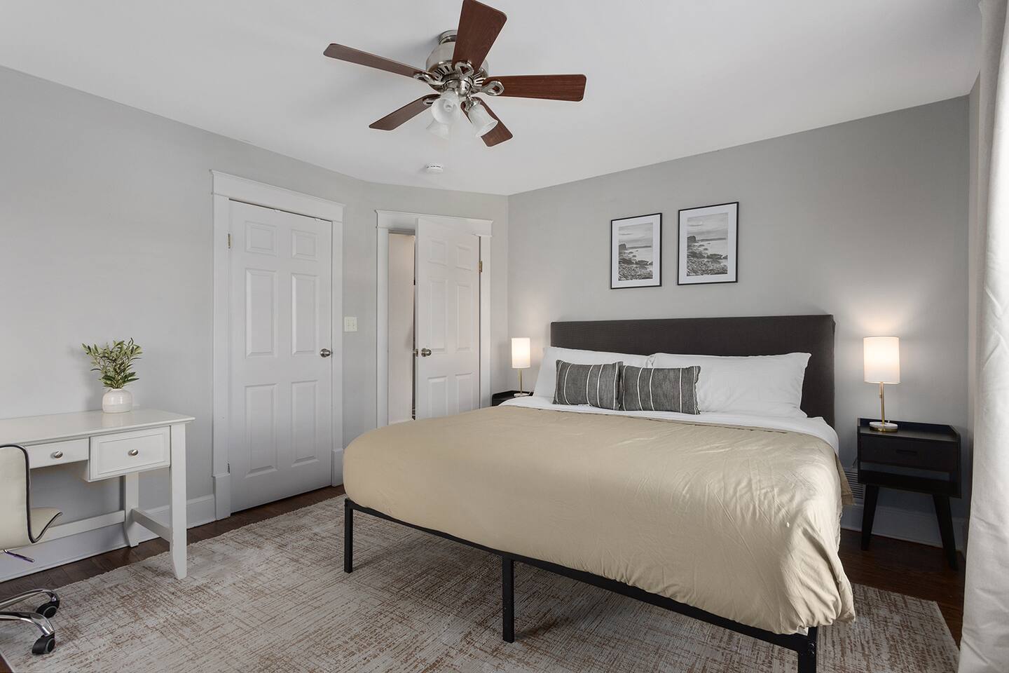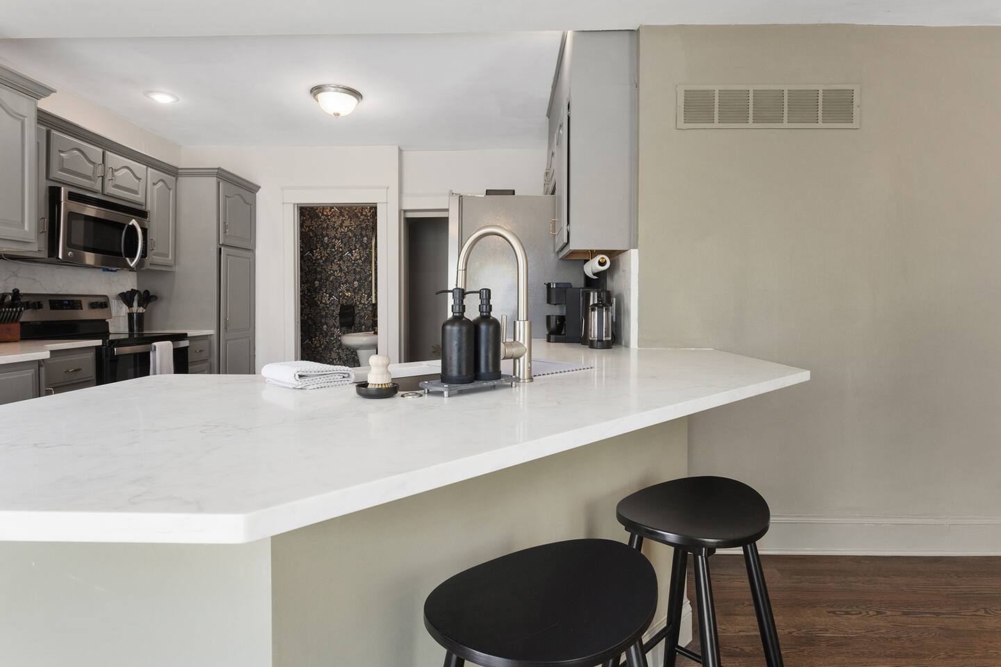Why stay at a typical airbnb when you can stay in what feels like a MODEL home? The furniture and bedding have been carefully selected to ensure maximum comfort. The kitchen is adequately stocked with all you'll need. The primary bathroom is like a spa - a custom walk in shower, custom closet, and soaking tub. Location could not be more perfect as you are one of the closest houses to award winning Downtown Lee's Summit - allowing you to walk to all the stores and restaurants. Guests love relaxing on our front porch. The back of the house has a private seating area and has a spacious parking area where it can comfortably fit 4+ cars.