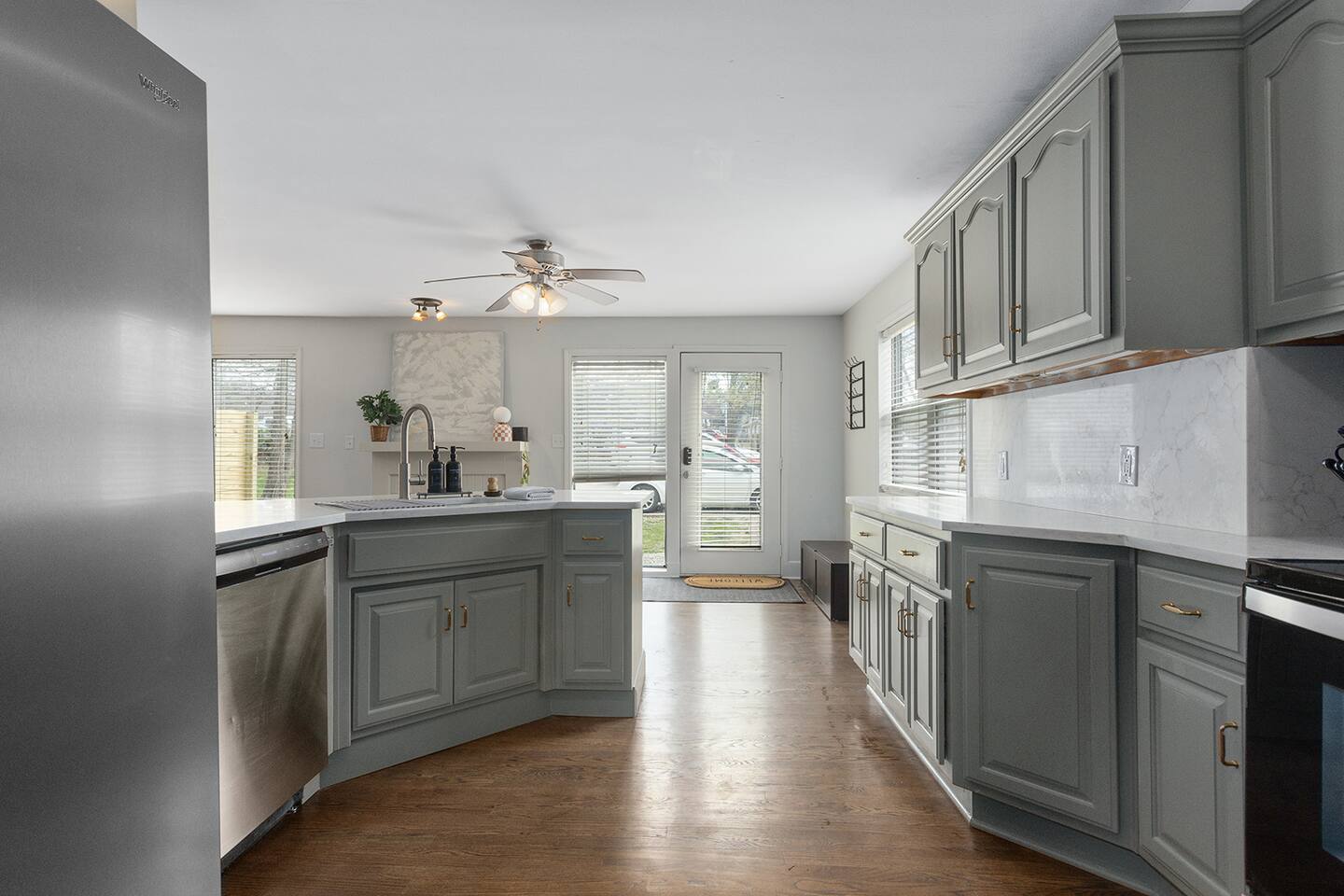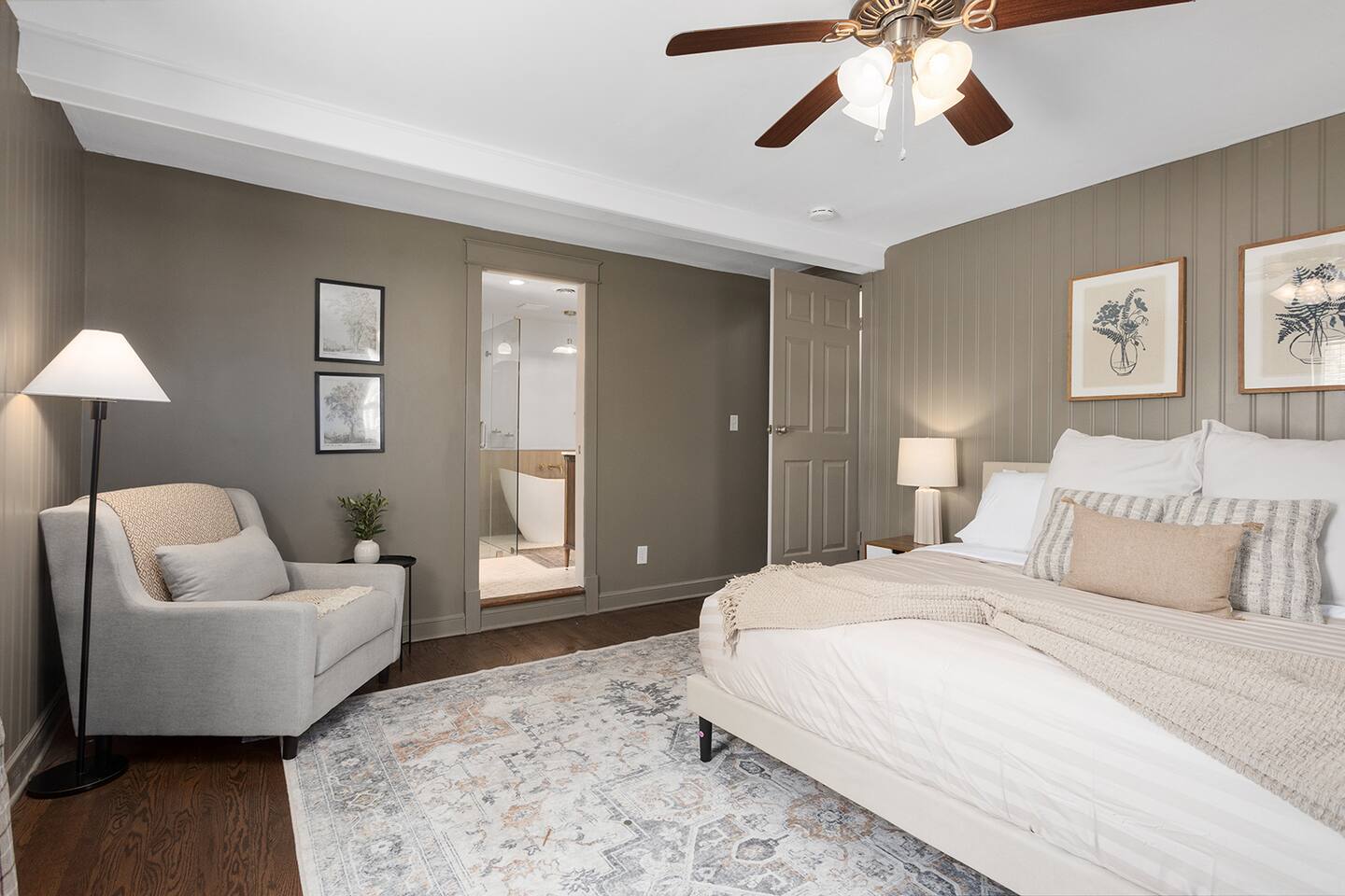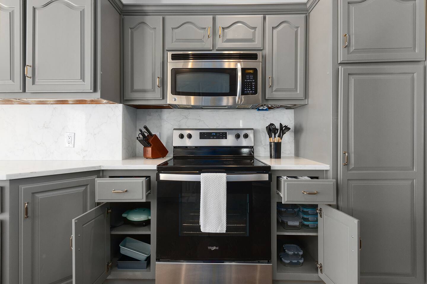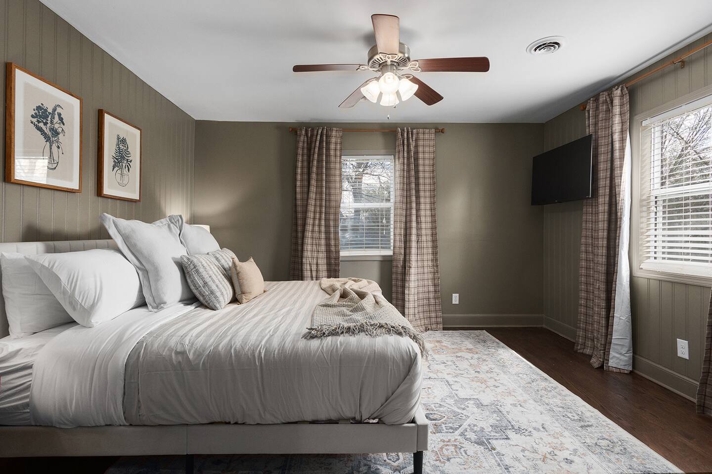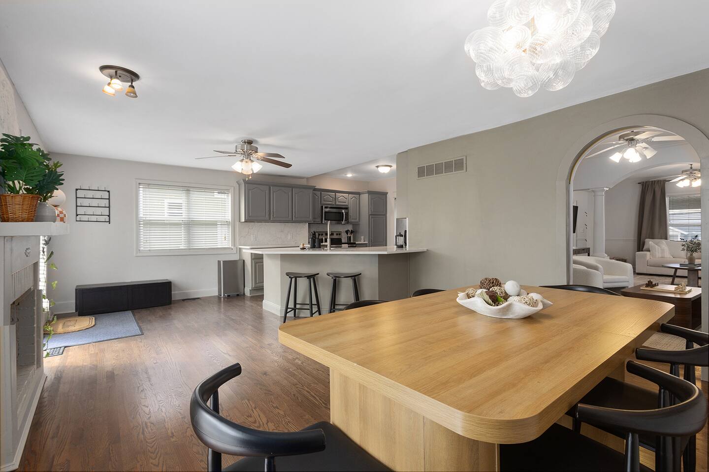 Why stay at a typical airbnb when you can stay in what feels like a MODEL home? The furniture and bedding have been carefully selected to ensure maximum comfort. The kitchen is adequately stocked with all you'll need. The primary bathroom is like a spa - a custom walk in shower, custom closet, and soaking tub. Location could not be more perfect as you are one of the closest houses to award winning Downtown Lee's Summit - allowing you to walk to all the stores and restaurants. Guests love relaxing on our front porch. The back of the house has a private seating area and has a spacious parking area where it can comfortably fit 4+ cars.